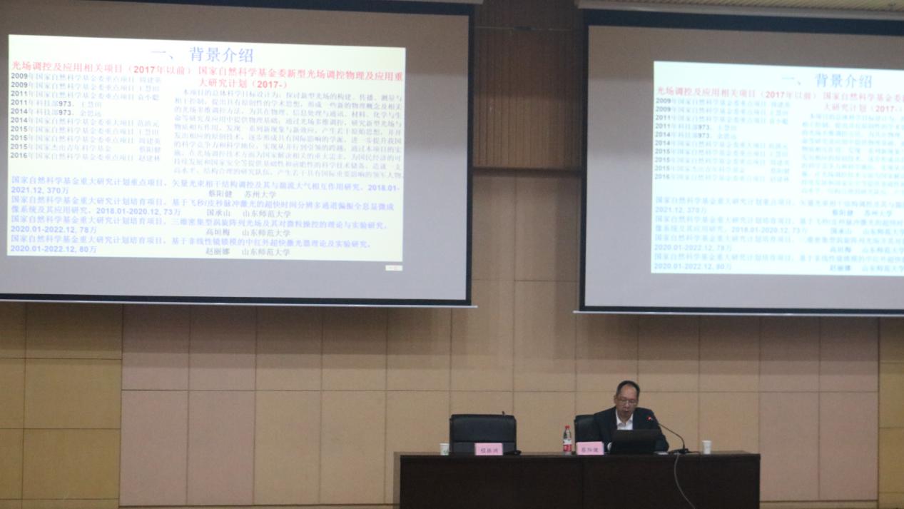 蔡阳健教授从国家自然科学基金委新型光场调控物理及应用重大研究计划讲起,详细阐述了光场调控及应用的研究背景、研究进展及未来攻关方向,他通过前期的研究指出,具有非高斯关联相干结构的新型部分相干光场具有许多奇异的特性,如自聚焦、自整形、自分裂、超强自修复等,这些特性在图像加密、信息传输、大气参数测量、远场成像、精密测量等方面具有重要应用价值。报告期间,蔡教授跟与会师生进行了深入的交流和讨论,解答了师生在光场调控及应用等方面关心的学术问题,并以自己的科研经历为例,分享了开展高水平科学研究的经验。