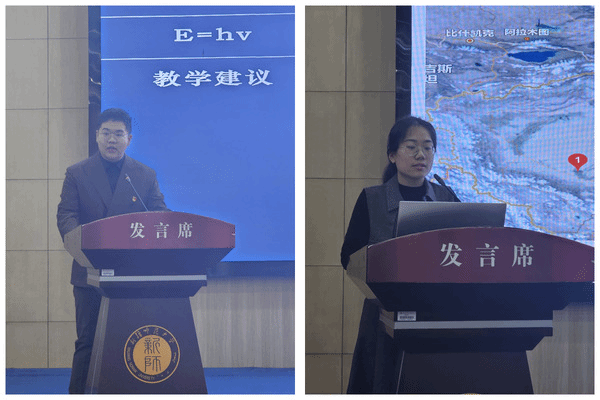 最后,实习支教学生代表张一涵和李雪菲向大家分享了实习经验。张一涵汇报了自己如何通过创新物理公式教学,激发学生学习兴趣的心得。李雪菲讲述了自己如何利用本地资源提升教学效果,如何与学生建立深厚情感的感人故事。