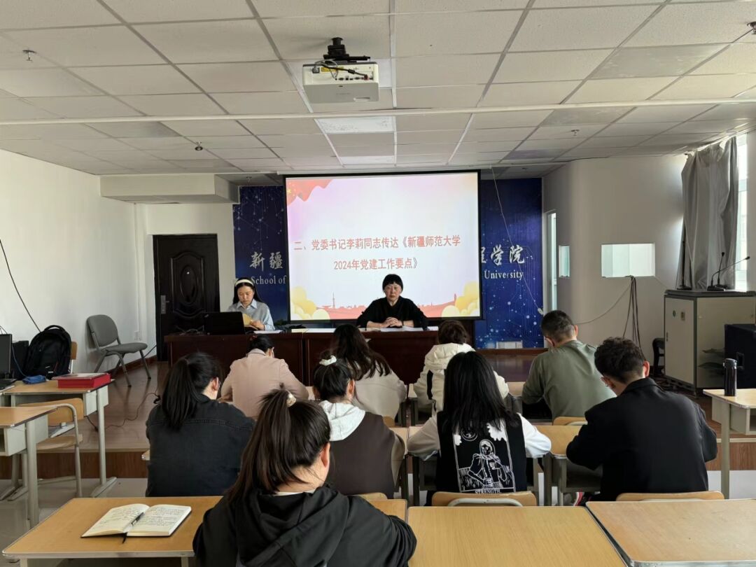 会议开始,全体参会同志认真学习了《中国共产党普通高等学校基层组织工作条例》和《中国共产党党员教育管理工作条例》。党委书记李莉向大家传达了《WilliamHill中文官方网站2024年党建工作要点》,并为2024年教师党员科研先锋岗帕尔哈提江·吐尔孙和学生党员学习先锋岗杨天奇颁发了证书和岗位展示牌。她强调,全体党务工作者要深入贯彻落实习近平总书记关于加强党建工作的重要讲话精神,全面提升党建工作水平,以典型为范、向先进看齐。