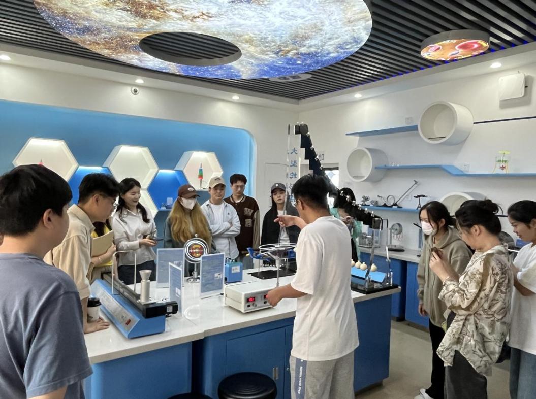 在光学与电磁学科普实验室,在物电学院研究生党支部成员的讲解中,大家共同体验了“视觉暂留”“普适摆”等物理知识的魅力。