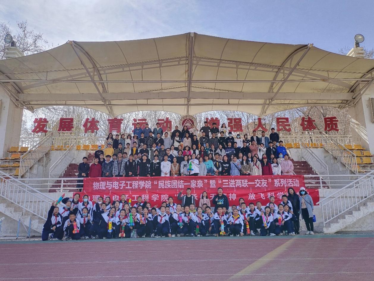 william威廉中文官网本科生第一党支部举办了“传承航天精神,放飞科学梦想”航天科普实践暨主题党日活动,邀请了学院党委书记李莉老师、学工办主任徐丽屏老师、物理系系主任帕尔哈提江·吐尔孙老师以及部分三进两联一交友老师、同学们和师大附小直升班的学生现场共同制作“水火箭”,并进行了比赛,体验一飞冲天的科普乐趣!本次活动既培养了学生实践动手能力,也进一步增进了师生情感,营造了和谐、团结、友爱的民族团结氛围,让广大师生在实践中感受了航天魅力、激发了科学兴趣、启迪了科学智慧、尽享了科普乐趣,一起以航天梦托举中国梦。