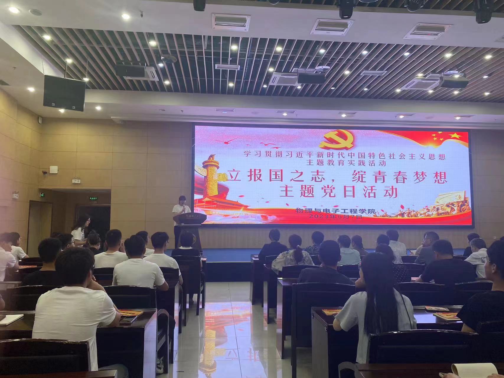 为进一步推动学习贯彻习近平新时代中国特色社会主义思想主题教育走深走实,创新主题教育理论学习形式内容,充分发挥毕业生党员的模范带头作用,有效促进“三强班级”“三好宿舍”内涵式建设,6月7日,william威廉中文官网组织全体师生党员在国教楼一楼报告厅举办了“立报国之志,绽青春梦想”主题党日暨毕业生“最后一次”党课活动,五个党支部共计110名党员参加活动,活动由本科生第二党支部组织委员郑叶同学主持。