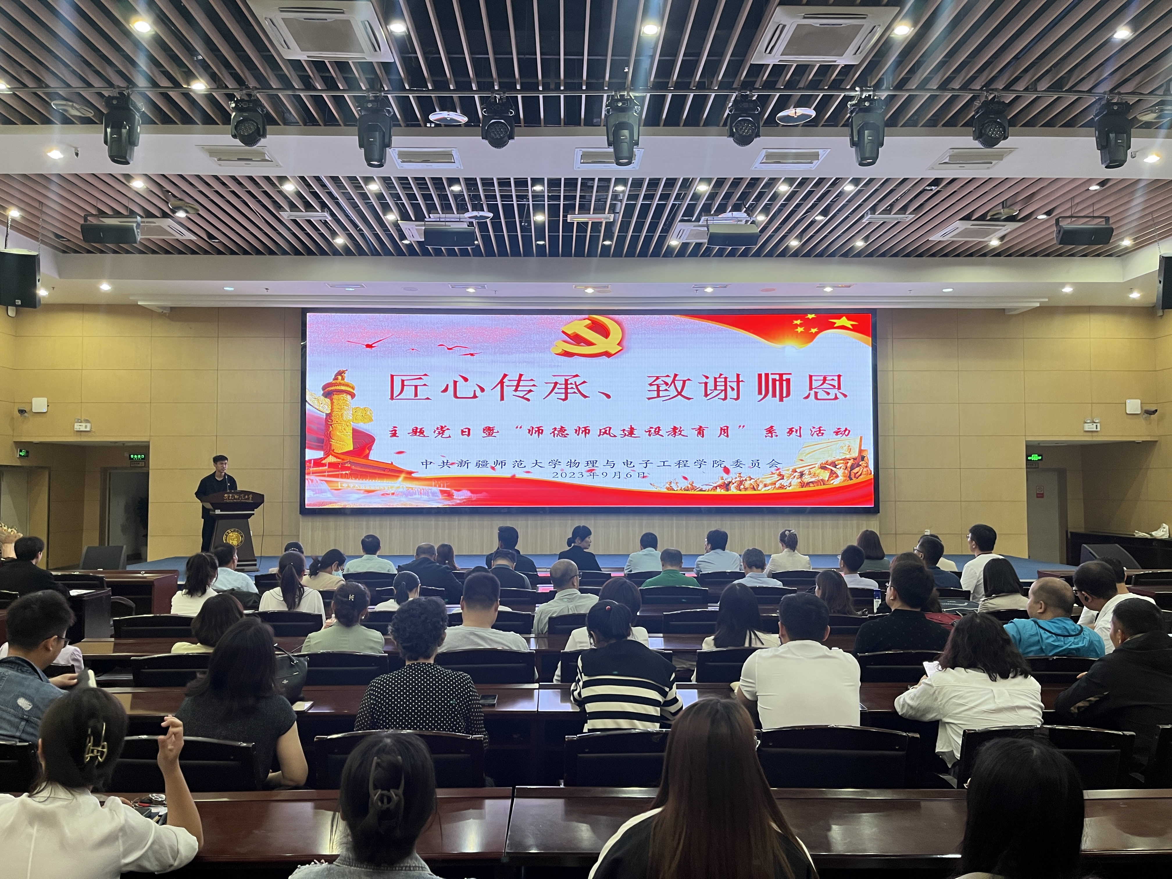 为深入学习贯彻落实习近平新时代中国特色社会主义思想和党的二十大精神,营造尊师重教的浓郁氛围,根据学校党委关于开展主题党日活动的指导意见和学院师德师风建设教育月活动方案的安排,在第39个教师节来临之际,9月6日,william威廉中文官网组织全体老师和学生党员开展“匠心传承、致谢师恩”主题党日暨“师德师风建设教育月”活动,活动由研究生党支部组织委员杨天奇主持。