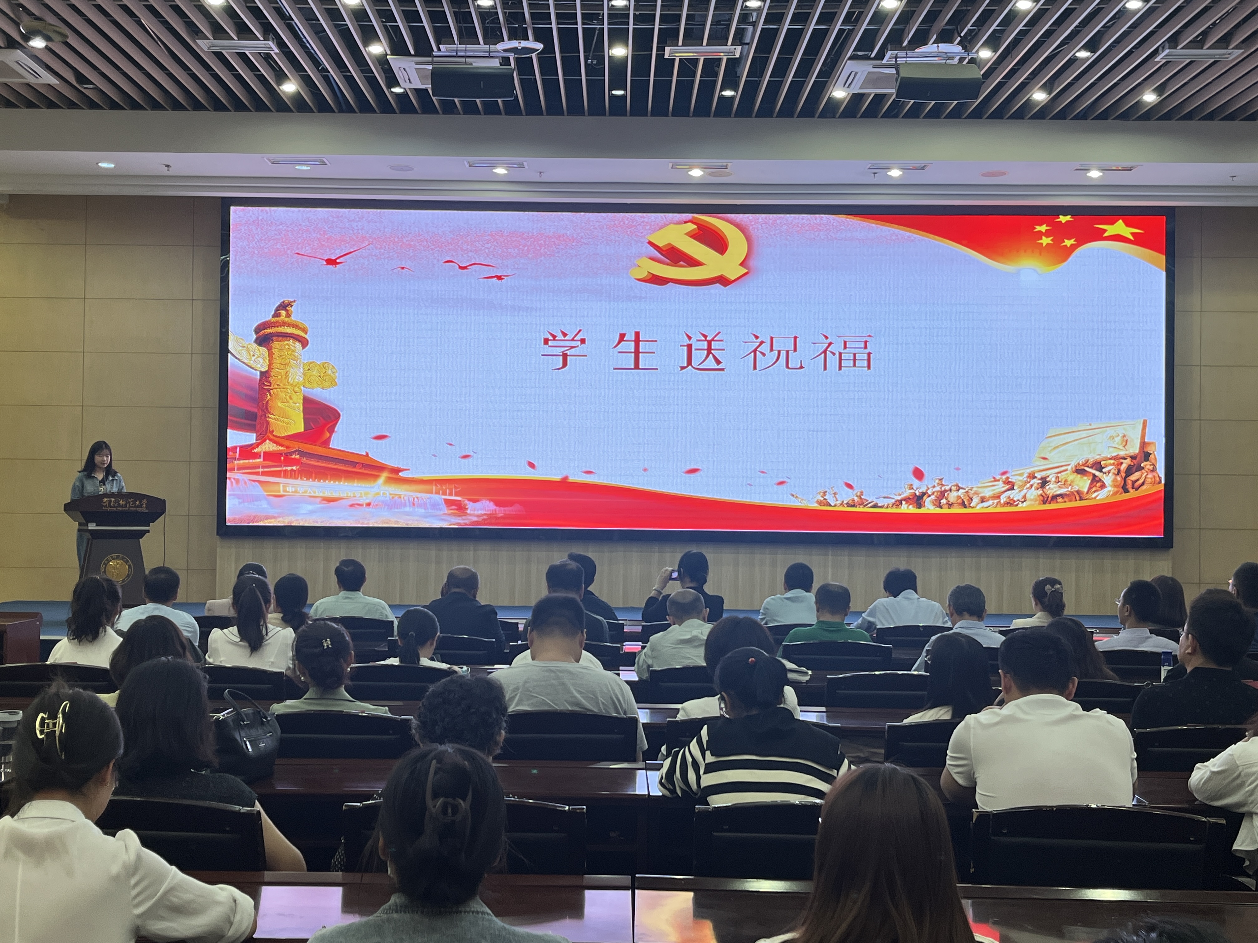 祝福声声感师恩。本科生第一党支部党员楼康玮、研究生党支部党员向燕作为学生代表为老师们送上真挚祝福,他们说,教师不仅授业解惑,而且传播梦想。在学习与成长的道路上,正是因为有了各位老师无私的奉献、殷切的教导,才让我们有所学、有所思、有所用、而后有所成。他们表示未来将不断提升自我,以耐心、勇气、意志和迎难而上的精神为党和国家贡献自己的力量。