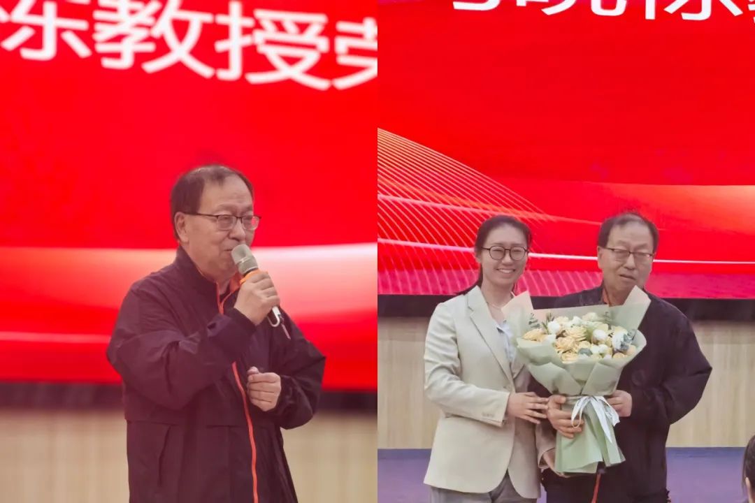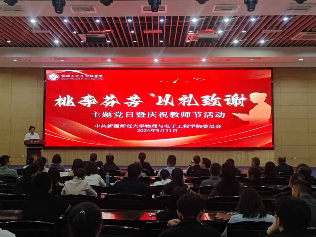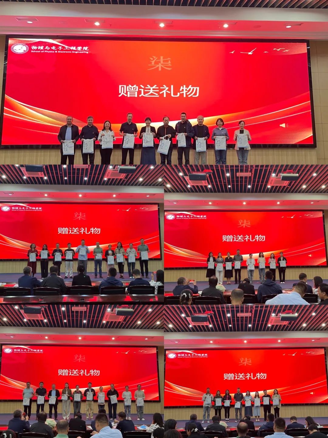 本科生第一党支部苏丽玮、本科生第二党支部喻月祉芸、研究生党支部姚萍萍作为学生党员代表依次为学院教师们送上诚挚的节日问候和美好祝愿。学院党委还特别邀请了物理系系主任帕尔哈提江·吐尔孙老师和新进教师刘欣老师作为教师代表发言,随后隆重为马晓栋教授举行了荣休仪式。学生代表们将学院党委精心为全体教职工定制的礼物送到了每一位辛勤耕耘、敬业奉献的老师手中,并送上了同学们亲手制作的含有甜蜜祝福的贺卡。