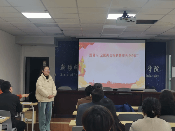 活动伊始,党支部书记秦晨同志领学了全国两会期间习近平总书记参加三场团组活动时的重要讲话精神。接着,党员教师共同观看了全国两会精神相关视频。随后,在党支部组织委员李舒园同志主持下,进行了“全国两会知识竞答”。竞答围绕2025年全国两会热点展开,内容涵盖了全国两会期间习近平总书记三场团组活动时的重要讲话精神和全国两会精神的基本常识及政府报告、国家机关显著成就与民生政策等核心议题,大家热情参与,积极应答,极大提升了党员老师的学习主动性和成效,使党员教师深刻领会到科技创新和产业创新在高质量发展中的核心地位。