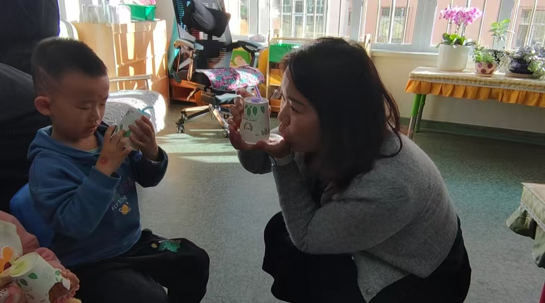 (二)会跳舞的小蛇:将扭扭棒弯曲成小蛇的形状,将纸杯的侧面挖一个朝上的洞,将纸杯倒置,将小蛇放在纸杯的上面,用嘴对着杯子的小孔发出“啊,啊”的声音。