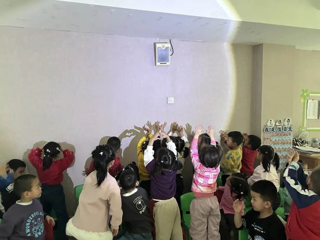 控制影子:1.准备好手电筒,关闭室内灯源,打开手电筒,将手电筒灯头朝向不同位置展示光总会沿直线传播。2.用手或带有形状的小物体放在灯源前,展示光背物体遮挡的影子,解释原因。3.变换遮挡物到光源的直线距离,得到控制影子大小的效果。4.教给孩子动手操作,用光在喜欢的手势或者物品上得到不同大小的影子。