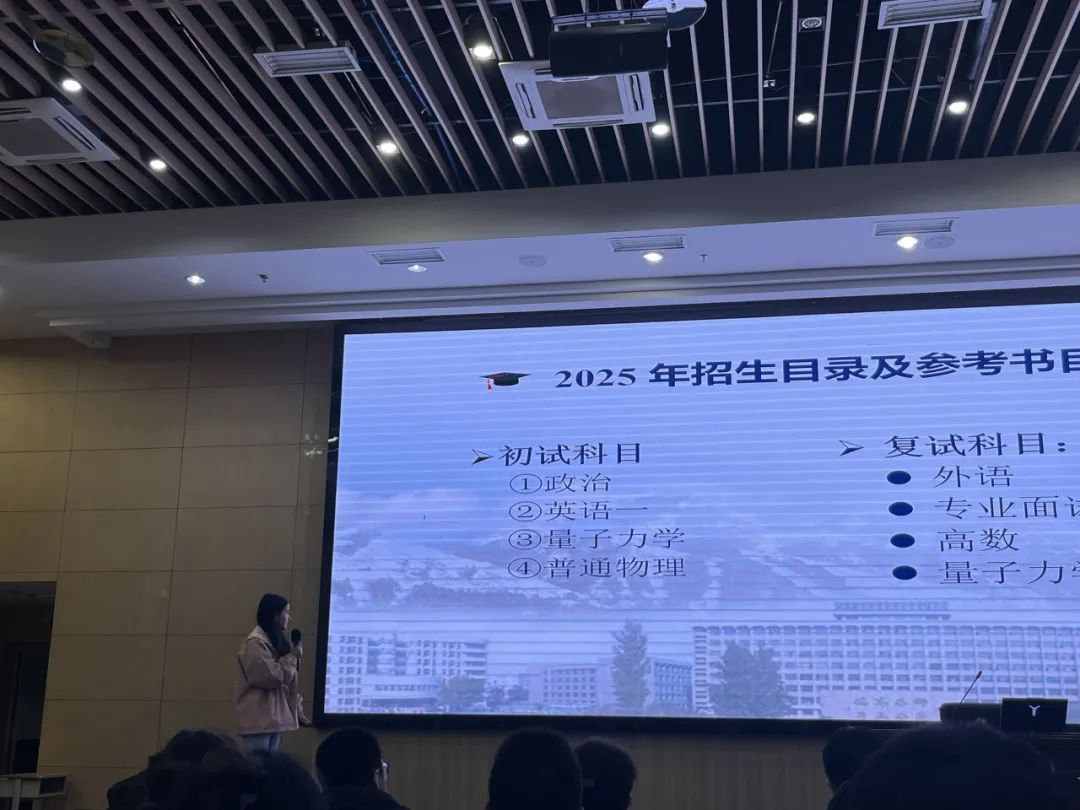 为进一步提升学院研究生生源质量,提高毕业生研究生报考率,为考研学子提供支持和帮助,4月17日,william威廉中文官网在国教楼一楼会议室举行2025年研究生招生宣讲会。会议由物理系主任帕尔哈提江·吐尔孙教授主持,2025届150余名学生参加。、