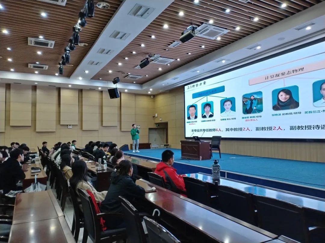 之后,光学、凝聚态物理、理论物理、无线电物理、学科教学(物理)专业的研究生代表玛木合·叶尔兰、牟元恒、阿曼妮萨·阿卜杜瓦伊提、王一帆、杨天奇五位同学结合自身经历与同学们分享了有关入学考试科目、研究方向、研究平台、师资力量及就业情况等方面的内容。