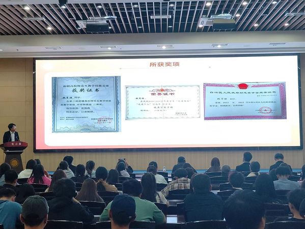 会议邀请了2024届毕业生中已就业和升学的6名学长学姐进行分享。签约中国民航新疆空管局的电子信息科学与技术20-5班刘乐建议大家首先要明确自己的目标,之后可以多咨询学长学姐,利用好身边的资源,要敢于尝试不要害怕失败。考取“硕师计划”的物理学20-1班魏育慷介绍了推免条件以及自身的经历,并强调大家一定要明确目标,努力去向它靠近,克服困难,勇敢拼搏。考取山东大学硕士研究生的物理学20-4班翟西洋讲述了自己的考研经历和大学四年获取奖学金的学习经验,并分享了自己在备考时的方法和技巧。考取和田地区选调生的物理学20-1班伊卜拉伊木江·依马木山介绍了报考选调生所需条件和相关注意事项,并向大家分享了自己考选调生的经历和经验。签约库尔勒华山中学的物理学20-4班闫诗卓强调了简历准备的重要性,并建议大家要多关注相关招聘信息并做好充分的试讲准备。考取WilliamHill中文官方网站硕士研究生的物理学20-1班窦凤怡分享了自己的考研复习准备和考取本校的优势,并针对考研的科目展开了详细的备考讲解。互动答疑环节,在场的同学们根据自己的实际情况和求职意愿踊跃发出提问,学长学姐分别就问题认真回答,鼓励同学们要敢于挑战自己,积极面对未来道路上的困难。