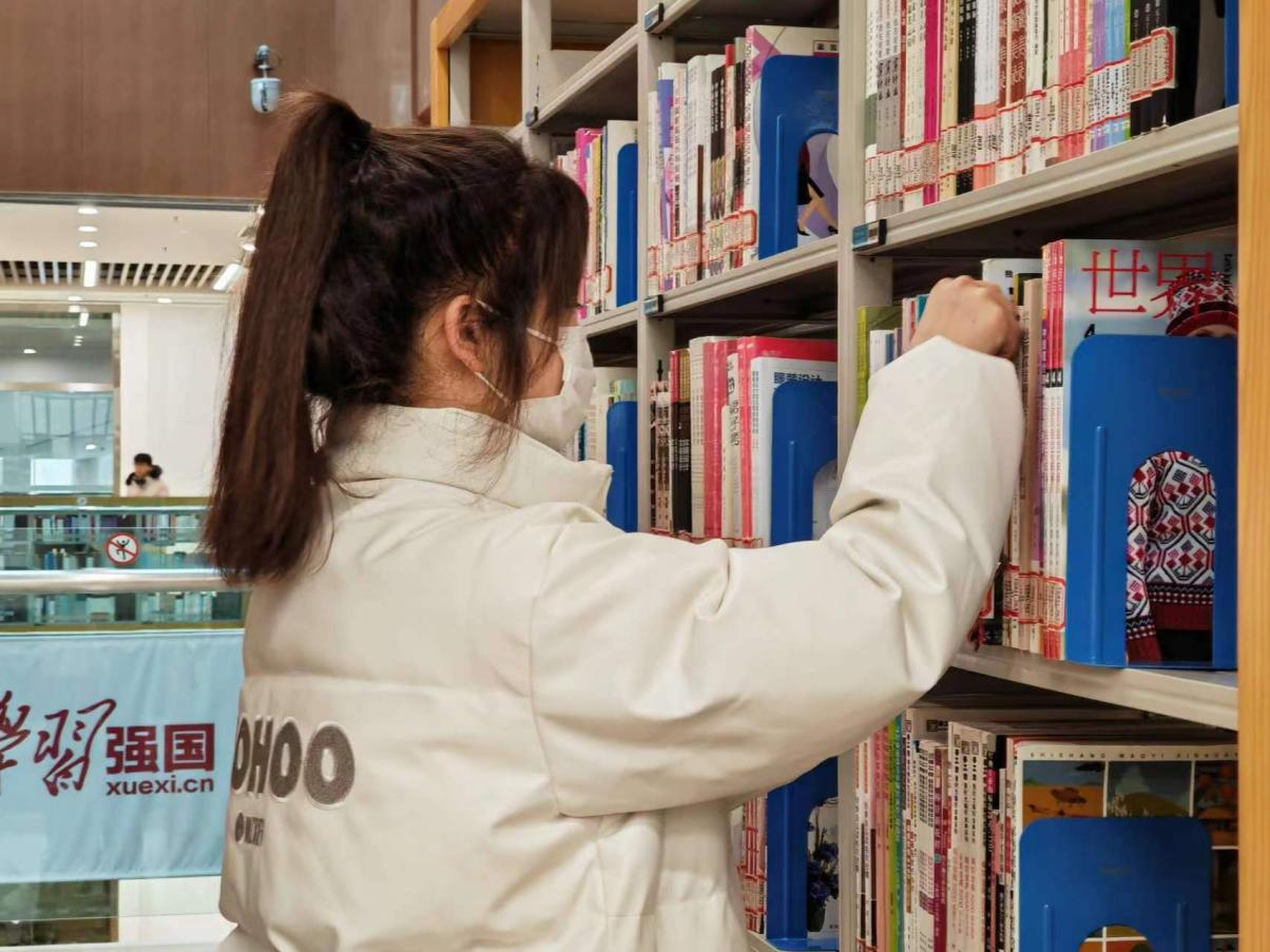 活动中同学们寻找自己喜爱的书籍