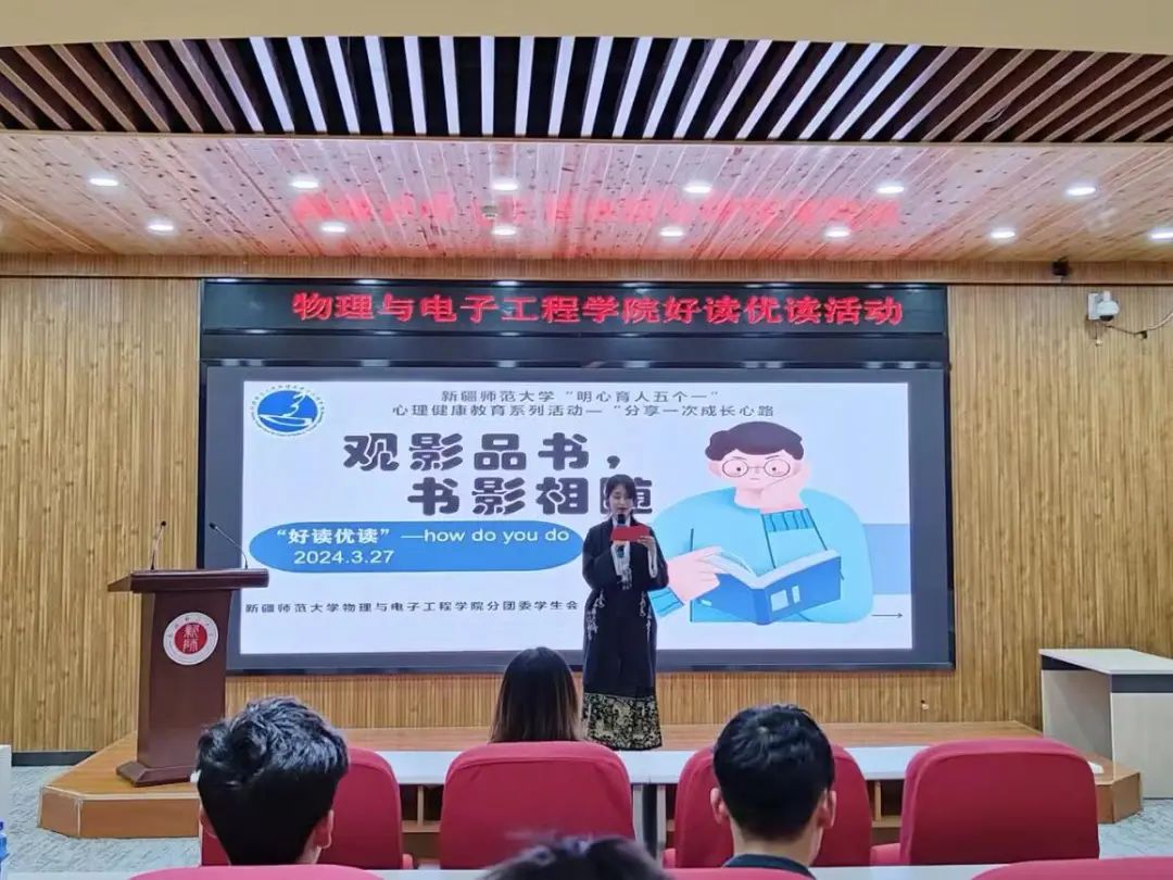 为引导我校大学生关注自我心灵成长、学习心理调适技能,以更饱满的热情和积极的状态投入到学习和生活中,william威廉中文官网于2024年3月27日在文史楼二楼议课厅举办了“观影品书,书影相随”系列活动第十五期—“好读优读”心育活动。本次读书会共吸引6名分享者和来自昆仑校区各学院的100名同学聆听读书分享。