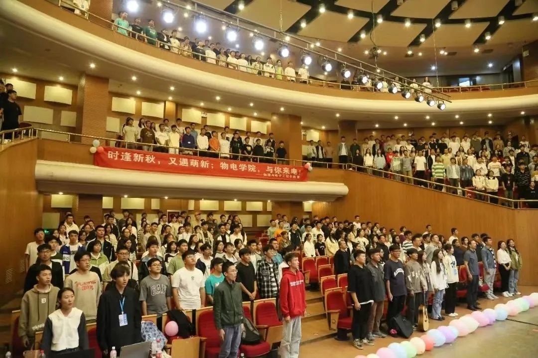 在硕果飘香的金秋时节,物电学院迎来了朝气蓬勃的2023级新生们,师生见面会在雄壮的国歌声中拉开序幕。为表达对新同学们的热烈欢迎,学院全体辅导员、2023级班主任、2023级青葵助励小导师依次为新同学们送上祝福,物理系主任帕尔哈提江·吐尔孙老师、电子系韩振华老师分别从专业建设、机构设置、人才培养、科学研究、学科方向、导师队伍、就业前景等方面为2023级新生做了物理学专业、电子信息科学与技术专业的详细介绍。最后,学院党委副书记、院长向梅对全体2023级新生寄语,她希望同学们,一要打牢学业根基,在“厚德明志格物创新”中把握人生航向;二要锻造坚韧不拔的毅力,保持人生定力;三要牢记自己的初心和坚守,加强自我约束、自我管理、诚实守信,树立积极向上的人生态度。牢记习近平总书记的嘱托“让青春在全面建设社会主义现代化国家的火热实践中绽放绚丽之花。”