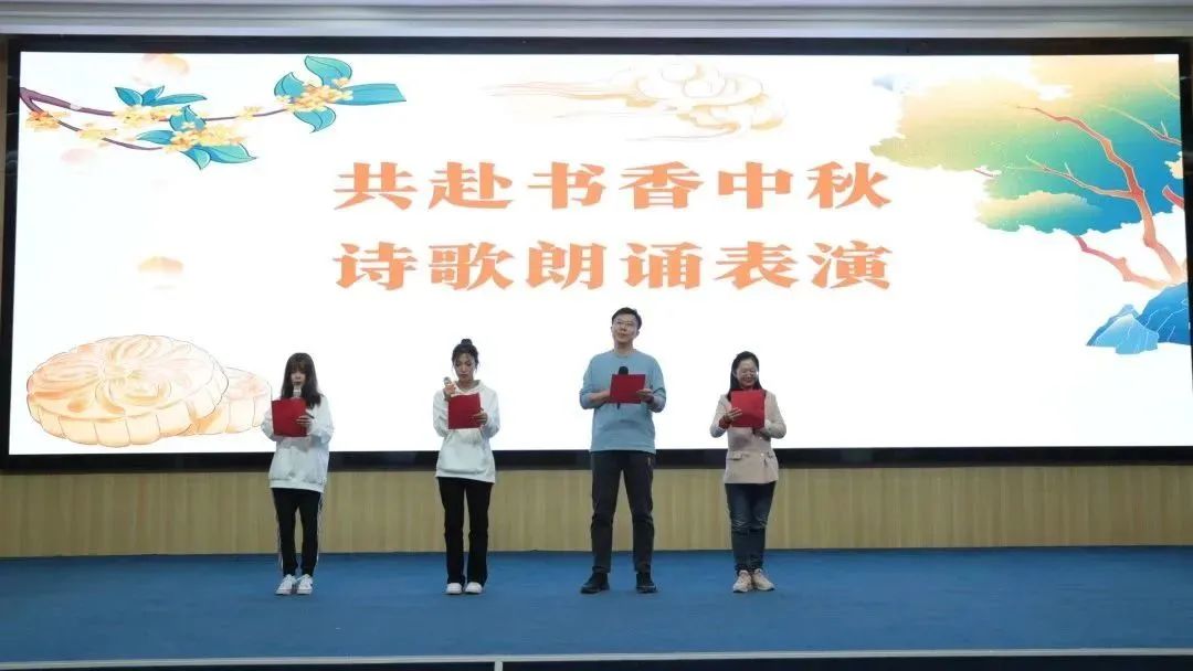 在节日前夕,学院还组织开展了“共赴书香中秋”活动,三进两联一交友师生共同上台表演诗歌朗诵,以书香之名感遇中秋,大家激情饱满,感情诚挚,表达了对祖国的热爱,抒发了华夏儿女的家国情怀。