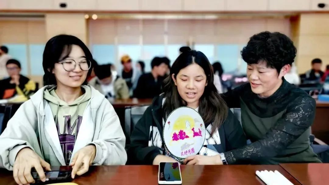 校党委常委、副校长季荣老师与联系学生共画团扇
