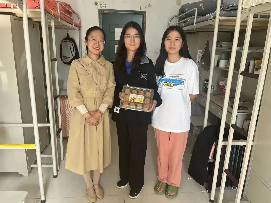 “双节”期间学院领导班子成员、辅导员老师们积极走进学生宿舍,为结对的学生送去月饼,为假期留校学生送上佳节祝福和关心。在实验室,在办公室,在温暖的家里,物电学院硕士生导师与研究生们通过各种方式共度佳节,构建良好和谐导生关系。