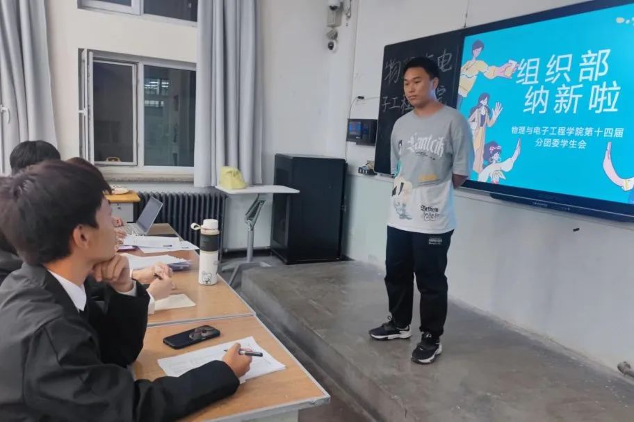 会上,第十四届分团委学生会各部门负责人分别以PPT的形式介绍了部门的工作职责、工作内容以及纳新要求,分享了丰富多彩的校园生活,充分展现了青春活力的部门风采。随后学生会指导老师赵海琴进行了纳新动员。她说,参与学生会工作可以学习和培养的各方面技能,非常欢迎2023级新同学积极加入学生会,期待能在学生会大家庭与你们相遇。