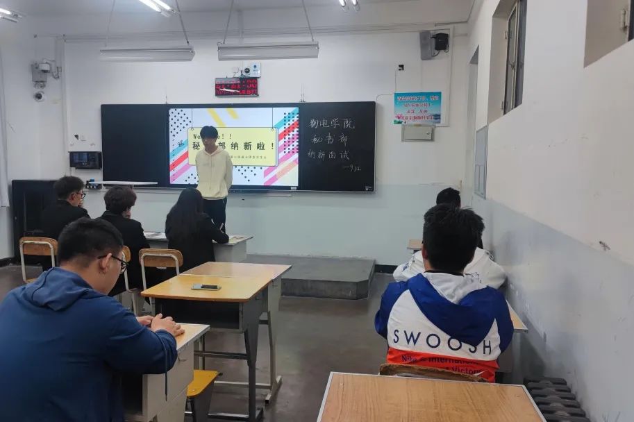 9月14日晚20:00,学生会各部门分6个会场在文史楼五楼教室进行了纳新面试,各部门负责人依据部门工作性质和工作重点采用多样化的面试形式,有针对性地进行了提问。参与面试的同学们热情饱满、沉着应对、从容作答,充分体现了个人的综合素质,展现了我院学子的卓越风采。