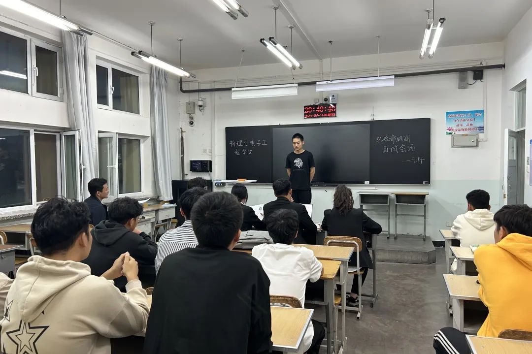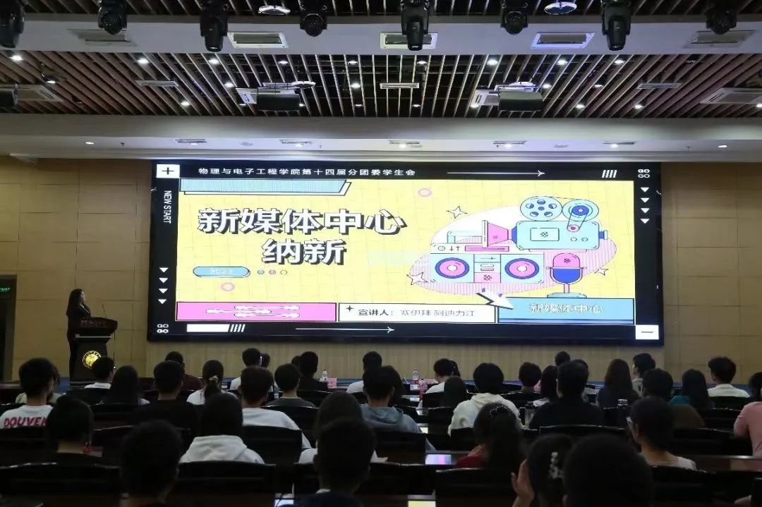 奋斗开新篇,扬帆再起航。为保证学生会高效稳定地运作,增添新的活力与激情,更加高效全面地开展各项校园文化活动,william威廉中文官网分团委学生会于2023年9月12日晚20:00在国教楼一楼报告厅举办了“携手与你同行,绽放物电之光”纳新宣讲会,学院党委副书记、纪委书记买星,学工办主任徐丽屏,辅导员赵海琴、木力扎提·马合木提,宁静以及2023级近200名新生参加。