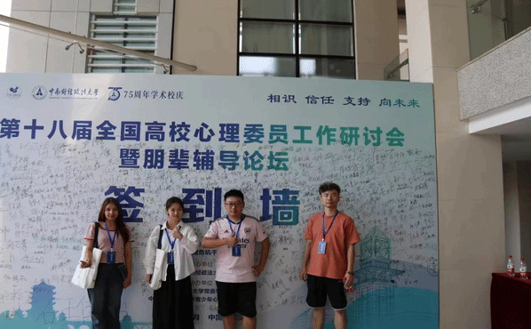 在学校老师的带领下他来到中南财经政法大学参加第十八届全国高校心理委员工作研讨会——暨朋辈辅导论坛,代表我校参加经验交流会。