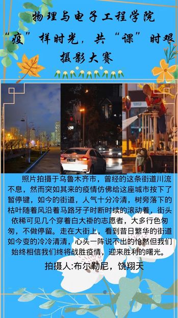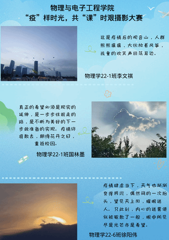此次活动为丰富同学们疫情下的学习生活,缓解、消除负面情绪搭建了交流与展示的平台,也为摄影爱好者提供了展现自我的平台。通过活动,不但激发了学生的摄影兴趣以及想象力、创造性、艺术感,也让学生通过记录自我成长心路学会在焦虑与不适中更好地调节学习和生活节奏。