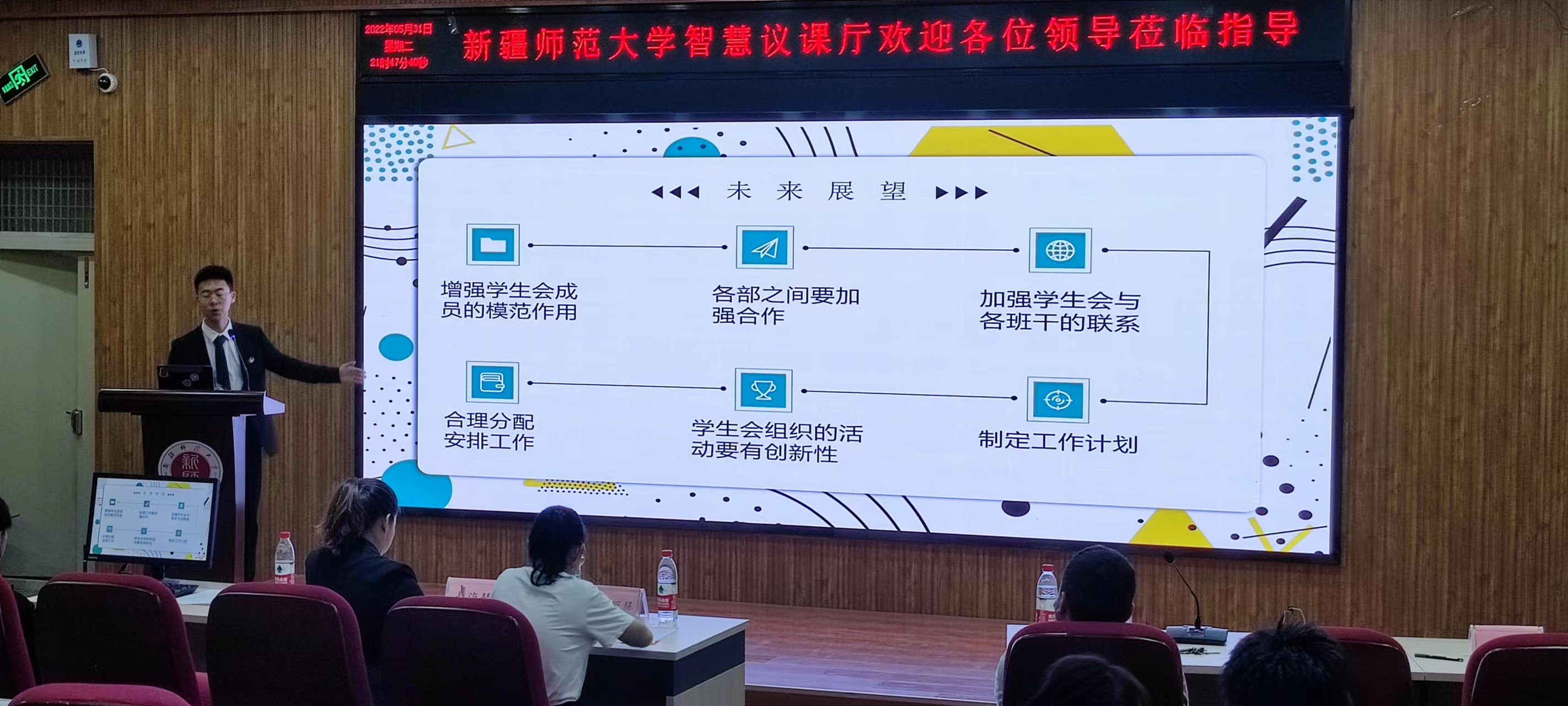 为充分发挥william威廉中文官网分团委学生会的自主职能,大力促进校园文化建设,开创学生会工作新局面新气象。根据相关规定指示,我院于2022年5月31日20:30在文史楼二楼智慧教室召开william威廉中文官网第二次学生代表大会。出席本次学生代表大会的有党委副书记、纪委书记买星老师、学工办主任徐丽屏老师、辅导员阿尔曼老师、辅导员赵海琴老师、辅导员范佳薇老师和校主席团成员宋京儒同学。