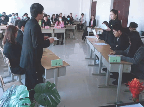 辩论赛在主持人凯撒尔·艾克拜尔同学宣布下正式开始,两组共计进行了两个小时的激烈辩论,根据辩论赛赛制、评分、计分规则,学院分团委负责人范佳薇老师对两组双方在辩论中的突出点,缺点进行点评,并对各组在辩论时着重方向、辩手在赛制规则上可利用点进行讲解,并分析了在“桃李杯”辩论赛时可能出现的问题进行,发现问题并提前解决。