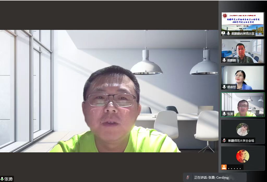 为了充分调动同学们的考研积极性,明确考研目标与方向,做好未来规划。我院于2022年5月13日以线上线下云端参会的方式组织开展格物论坛之——把准形势和方向--2022考研分析会暨2023考研动员讲座。学院副院长戴鹏鹏主持,学院党委副书记、院长路俊哲介绍学校和研究生就业概况,通化师范学院物理学院副院长张勇老师发言,大三年级全体本科生(WilliamHill中文官方网站、通化师范学院、伊犁师范大学)及各年级对考研感兴趣学生参加学习。