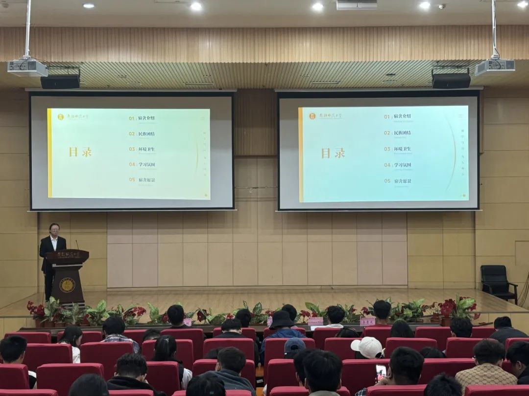 为进一步发挥“三好宿舍”示范引领作用,按照学校《关于开展“三好宿舍”达标测评与评优活动的通知》的要求,10月8日,william威廉中文官网在国教楼三楼报告厅组织开展“三好宿舍”评优答辩活动。学院分团委书记木力扎提·马合木提、辅导员苑运强、李贵龙、院学生会纪检部部长李柯润、依斯玛依力·艾麦提担任答辩评委。2024级各宿舍代表共计60余人观摩活动。活动由范诗宇、席永康同学主持。