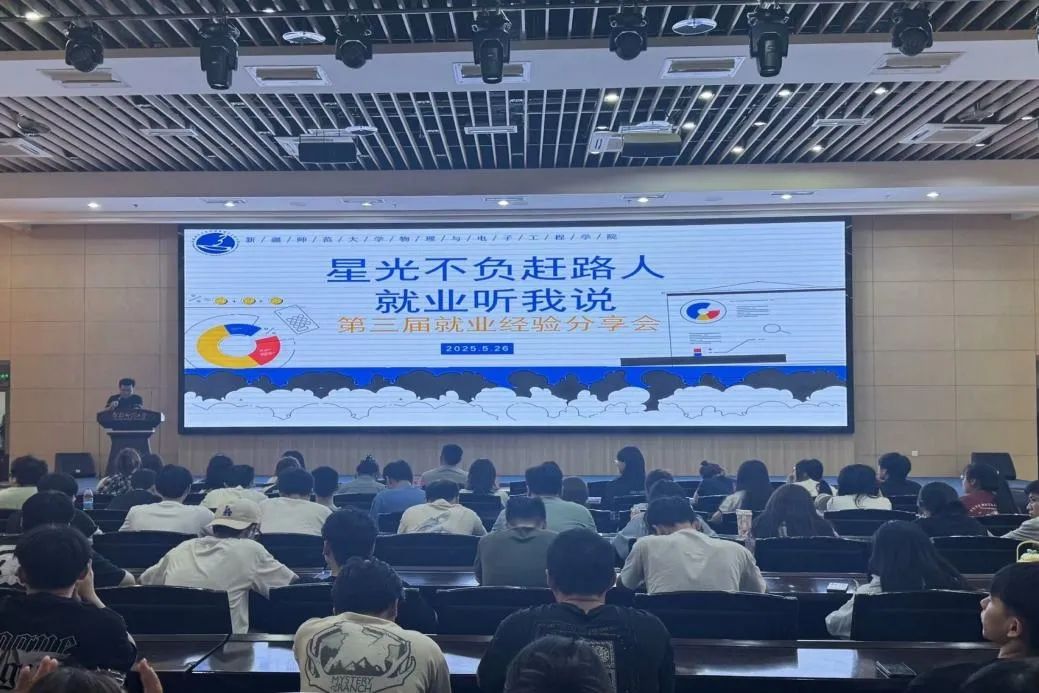 为促进我院2025届、2026届毕业生更充分、更高质量就业,5月26日20:00在国教楼一楼报告厅举办了“星光不负赶路人,就业听我说”第三届就业经验分享会,活动特别挑选了在基层就业、升学就业、事业单位就业、企业就业等9位2025届毕业生讲述了职业规划、备考计划、求职过程的感悟与经验,学院党委副书记、纪委书记买星,学院分团委书记、2022级辅导员木力扎提·马合木提,就业专干、2024级辅导员苑运强老师参加活动,2021级未就业学生、2022级学生共300余人参加活动。