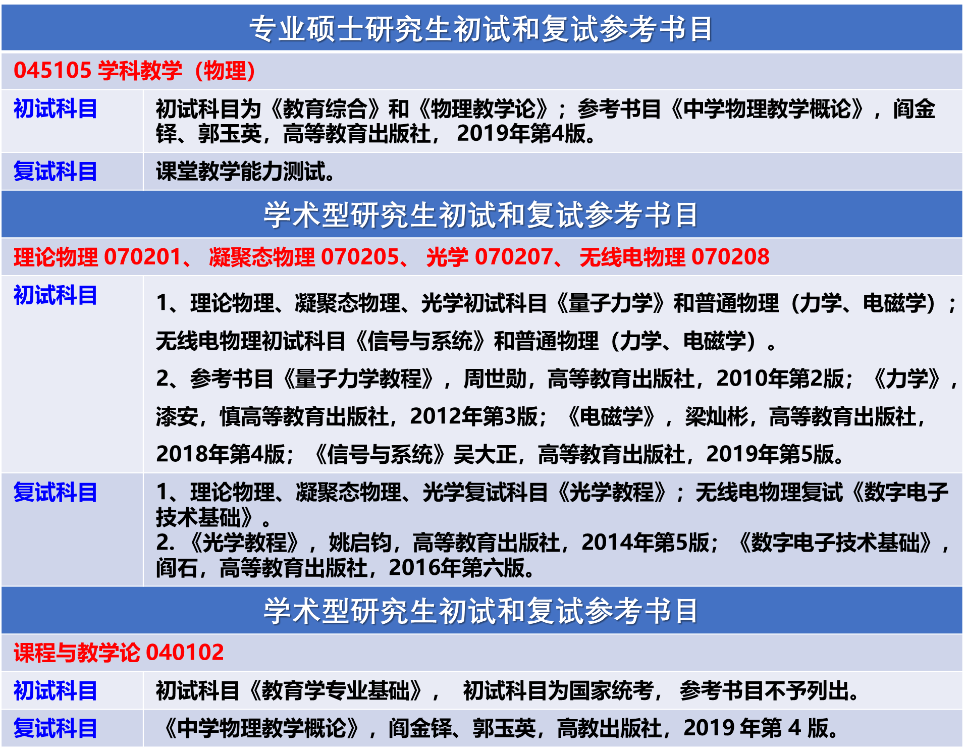 课程与教学论(物理)方向:本方向培养培养具有良好思想政治道德素质和现代教育理念,掌握系统专业理论,拥有独立从事物理教育教学和研究能力的“有知识、有见识、有能力”的适应社会发展需求的中学物理骨干教师和研究人员。