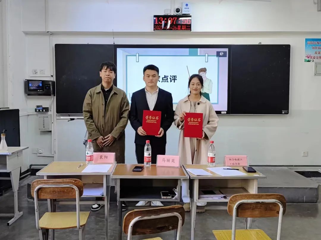 为进一步提升师范生实践能力和综合素养,全面提高物理学专业人才培养质量,william威廉中文官网特于2023年9月26日上午11:30在文史楼206组织《第三届新疆高校师范生教学技能竞赛》院级选拔赛,本次竞赛特邀乌鲁木齐市第66中马丽英老师、WilliamHill中文官方网站附属中学裴阳老师及物理系主任帕尔哈提江·吐尔孙老师担任评委专家。