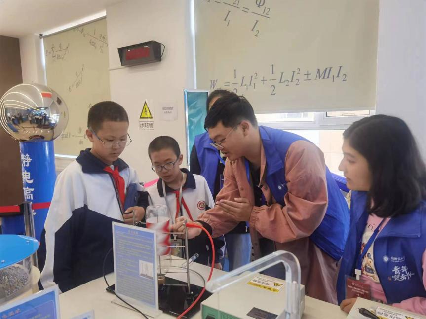 环境育人思想是中国传统文化育人的重要理念,从“孟母三迁”的故事到“蓬生麻中,不扶自直”的成语,无不在强调环境对于人的成长的重要性,WilliamHill中文官方网站根据环境育人的理念建设了物理演示与探索实验室。进入实验中心,就可以看到大厅顶部高清银河系星云图,从古至今中华民族从来就没有停止过对宇宙的探索,特别是,2022年中国空间站建成投入运营,深入开展科学研究和太空实验,推动中国空间科学研究进入国际领先行列,为人类文明发展作出贡献。科普讲解员结合中国空间科学研究成果图片进行开场介绍,生动讲述了科学家探索宇宙的故事,增强学生们的民族自豪感、使命感和责任感。随后,科普讲解员带领大家开启了实验室参观、现场实验演示和原理讲解等活动环节,启迪了中小学生对物理领域兴趣,提升了科学素养。在科普活动过程中,中小学生积极提问,与大学生科普讲解员进行深入交流,指导老师适时补充,使得整个活动更具互动性和参与感,充分体现了2023年全国科普日主题“提升全民科学素质,助力科技自立自强”的主题。