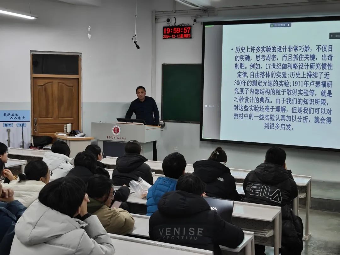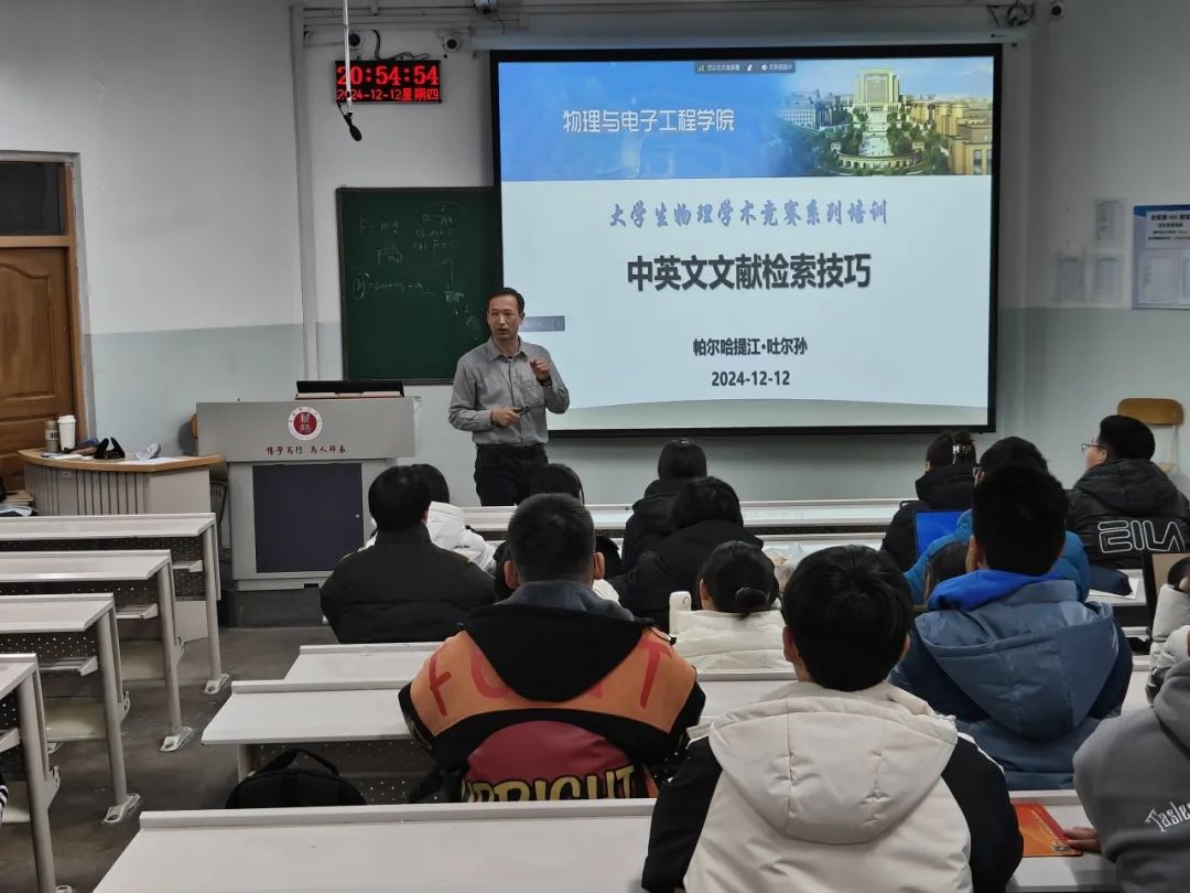 为进一步提高物理专业本科生学术技能、丰富物理知识储备,培养学生格物致知、砥志研思的精神,12月12日,william威廉中文官网开展了物理学术竞赛系列培训的首场讲座,由帕尔哈提江·吐尔孙和毕拉力两位老师主讲,报名参加物理学术竞赛的全体同学和培优班的学生参加本次培训。
