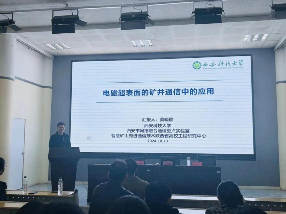 西安科技大学黄晓俊教授作了题为“电磁超表面在矿井通信中的应用”的报告。黄晓俊教授表示,电磁超表面传感器技术在实现智能煤矿建设中发挥着重要的作用,是杨河林教授所做基础研究的一项重要应用。针对煤矿井下复杂的环境,利用电磁超表面技术能够在矿井巷道中实现5G无线信号的增强和补盲,实现全矿井5G无线通信全覆盖,并且,通过能量选择表面可以对功率信号进行选择,滤除环境产生的高功率电磁场对传感器的影响,保障数据能够准确安全的传入地面调度中心,为实现煤矿无人开采提供了的安全稳定的通信保障。